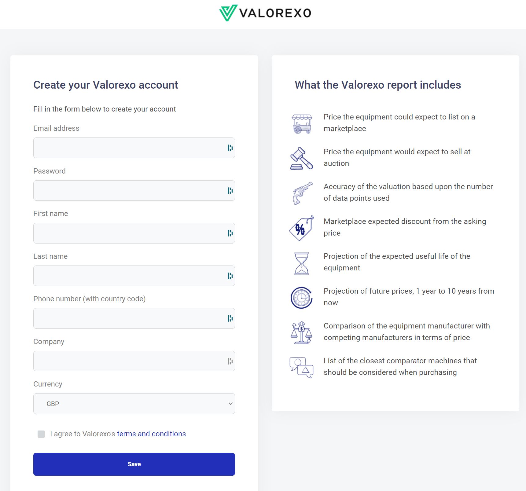 Having registered for a free account you will be redirected to the following valuation request form: