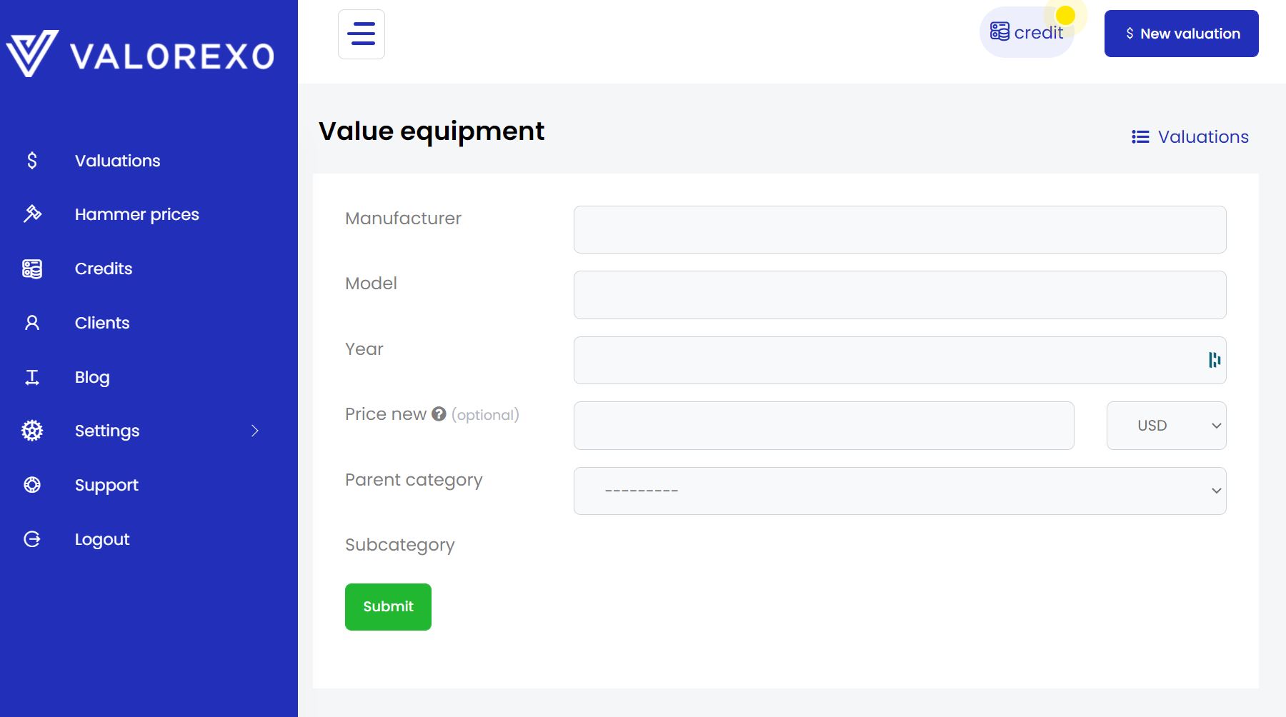 You are required to enter the Manufacturer, Model, Year for the machine and select the required Parent Category and Subcategory.
